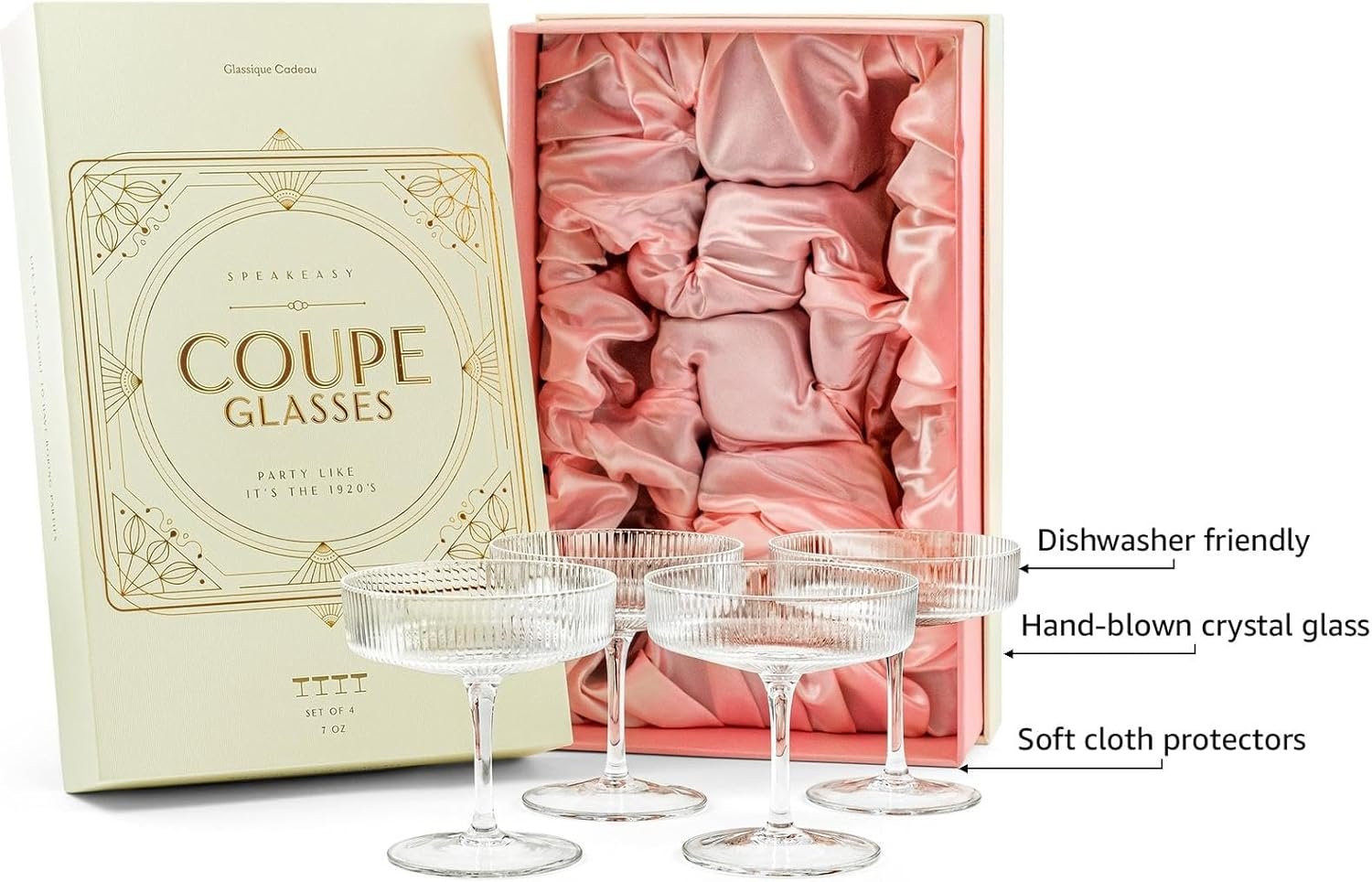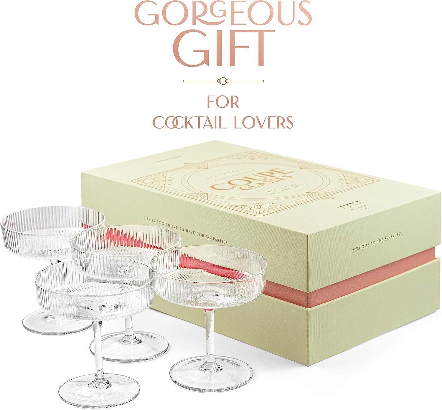 Great Gatsby, these are some good-looking glasses! The stunning set of coupe glasses looks like it’s straight out of a party in the 1920s and will add the elegant flair to your sister’s barware that she craves. There are four timeless glasses in the box, which is fabric lined for safe storage.