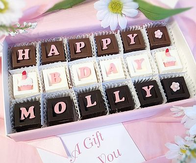 When PMS comes to visit she can scare it away with a set of 18 pieces of personalized birthday chocolate. She’ll probably cry when she sees this, but they’re tears of joy and excitement at the prospect of eating gourmet milk, white, and dark chocolate.