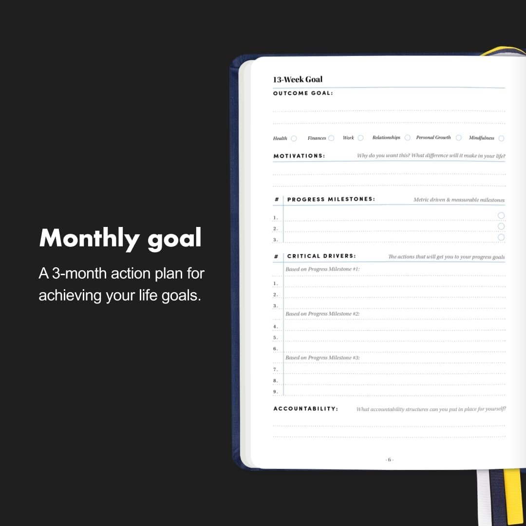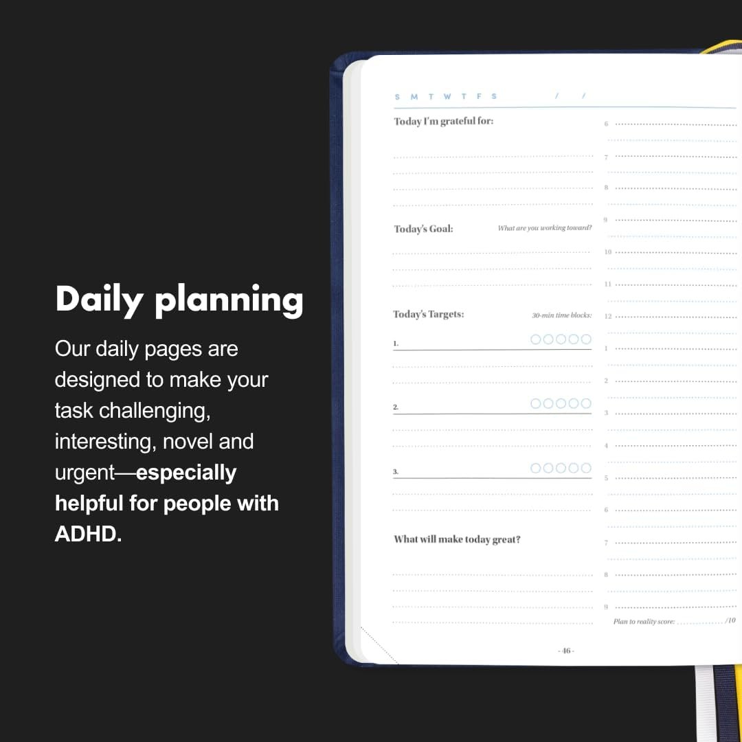 Help stay on top of all your goals and busy scheduling by writing everything down in the BestSelf planner and journal notebook. This fountain pen friendly planner will help you focus on daily goals as well as track big-picture goals and prioritize them.