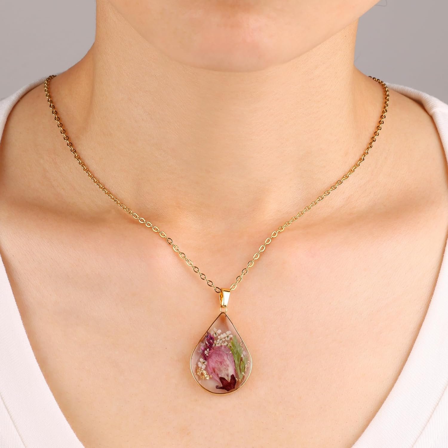 Give her a spin on the traditional birthstone jewelry with a flower instead of a gem. This teardrop necklace features an array of dried flowers at its center that represent her birth month’s flower. Every piece is handmade so no two are alike and it’s available with a gold or silver finish.