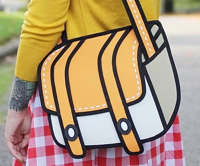 Animate your plain appearance by spicing up your wardrobe with these colorful cartoon bags. These unique vibrant bags feature an eye catching design that creates the illusion you’re carrying your stuff around in a giant 2D cartoon purse.