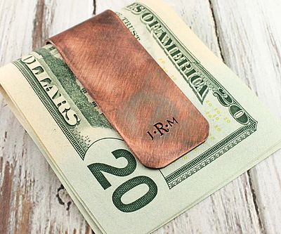 If he’s kind of a minimalist guy, a money clip might suit him perfectly. This elegant copper piece is stamped on the front or the front and back, and offers three styles for the custom text.