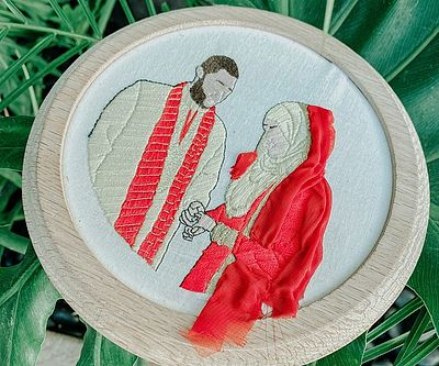 You’ll really wow her with a portrait that practically jumps off the embroidery cloth. This circular caricature is made from an image of you two and carefully sewn with pops of personality, like fabric, thrown in for incredible effect. It’s available in three sizes and you can add your names.