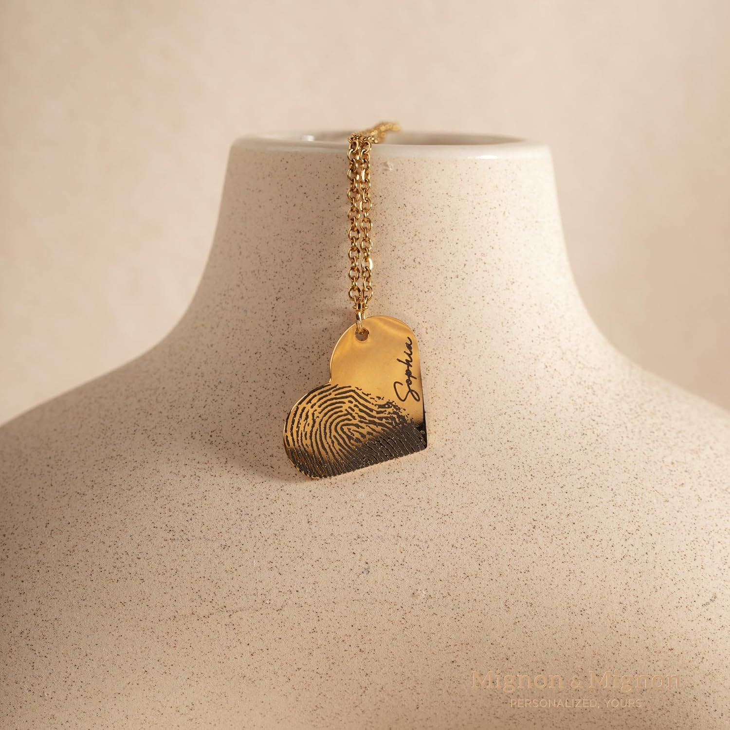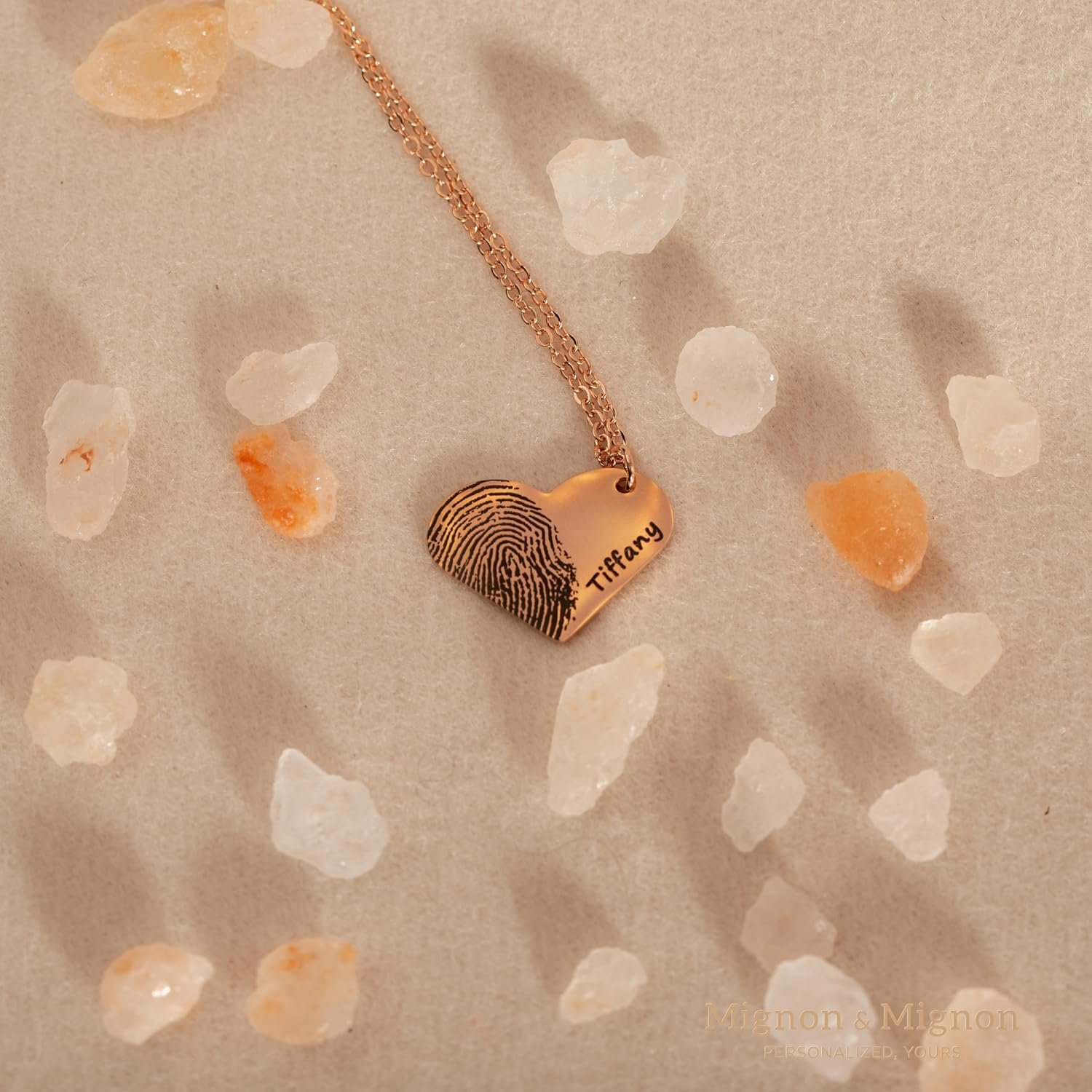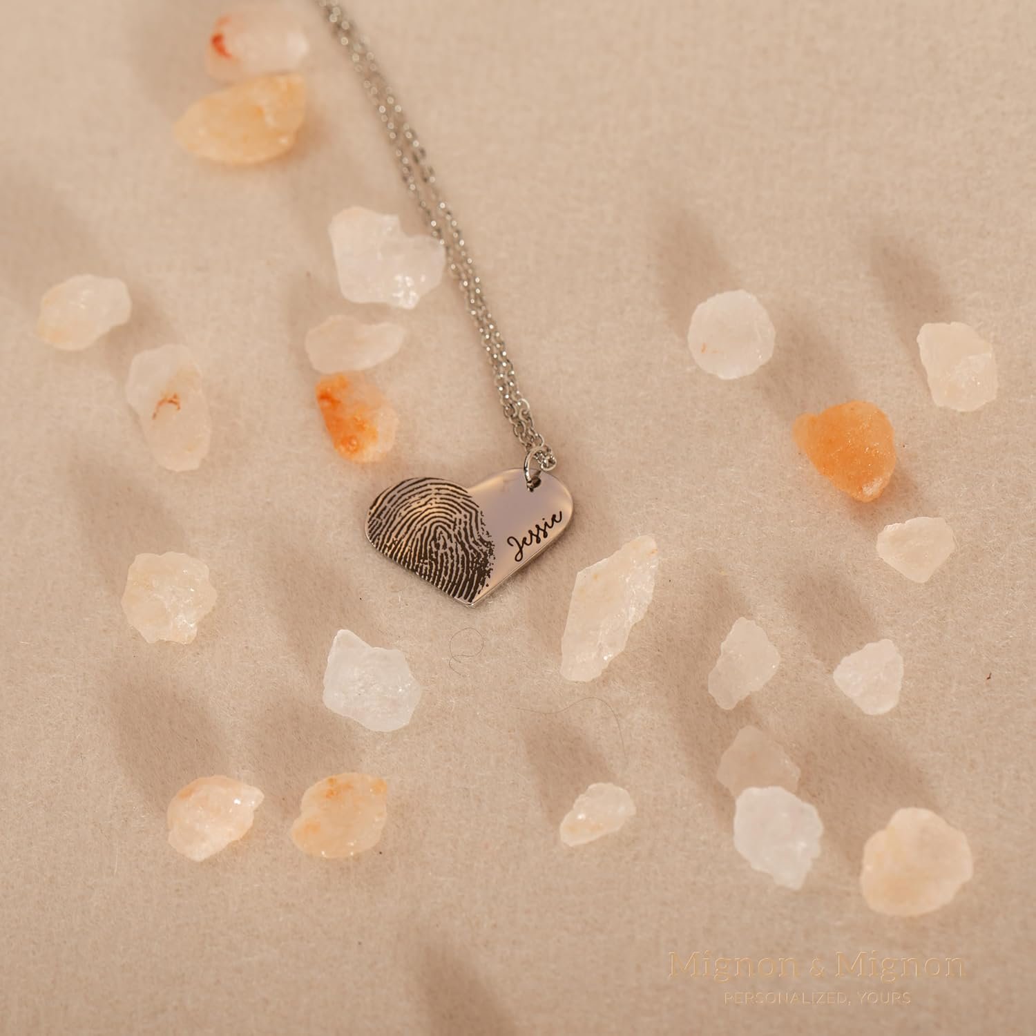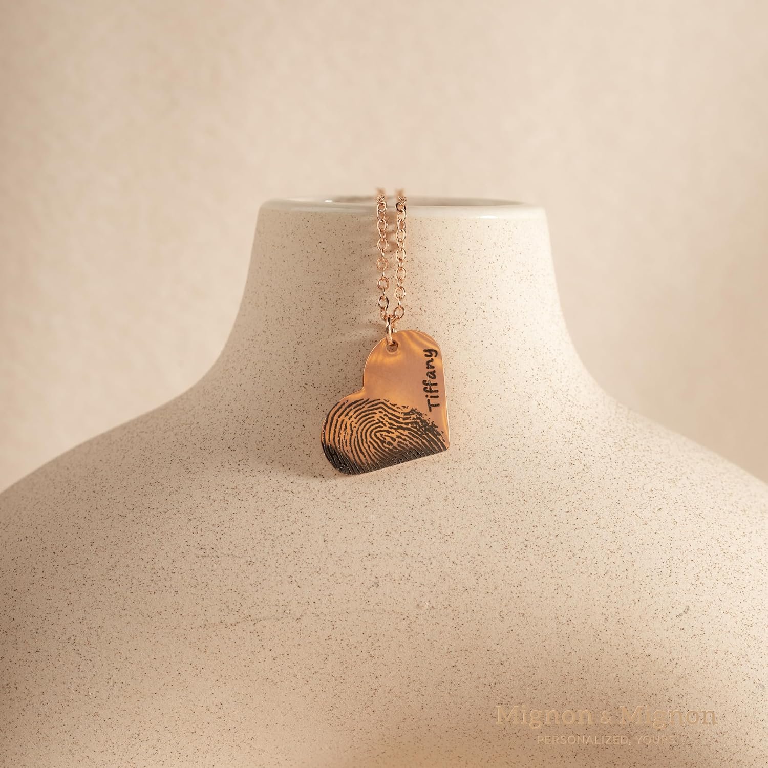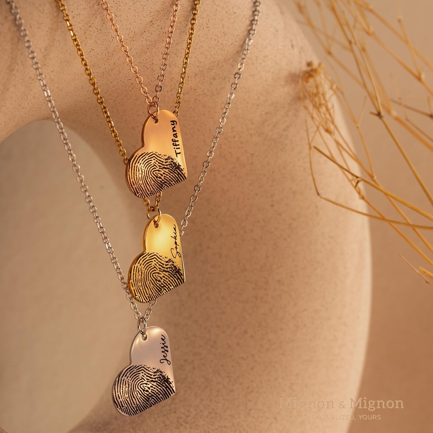 You’re the only one for her, and with this customized heart fingerprint necklace, you can give your soulmate a piece of you that’s totally unique. The crafter engraves your fingerprint on the silver, gold, or rose gold finish of the heart pendant. You can also add a short message or your name so she can carry your heart with her.