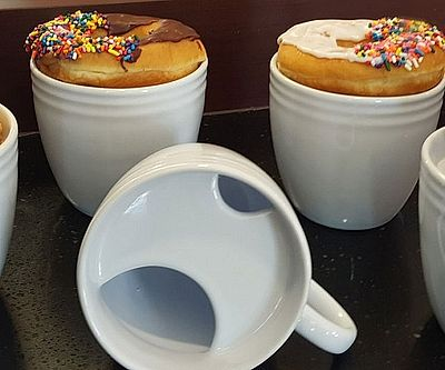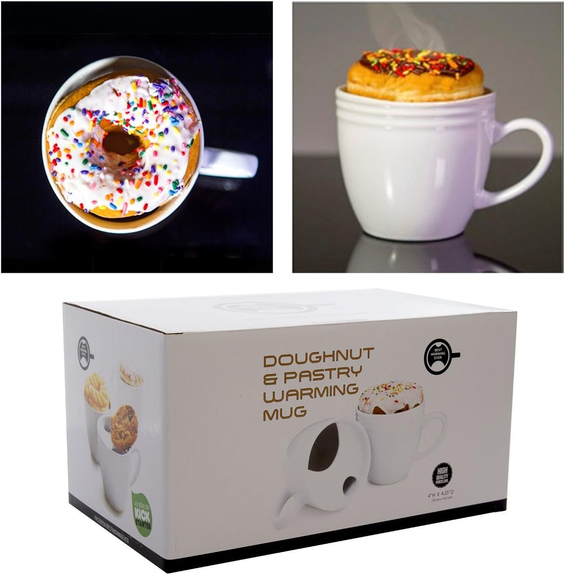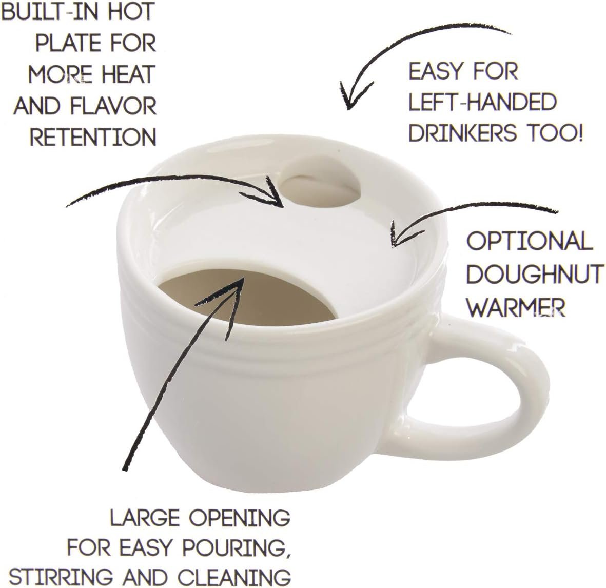 Kickstart your morning breakfast by insulating your coffee while simultaneously heating up a delicious donut by using this incredible donut warming coffee mug that features a built-in plate on the top for your pastries.