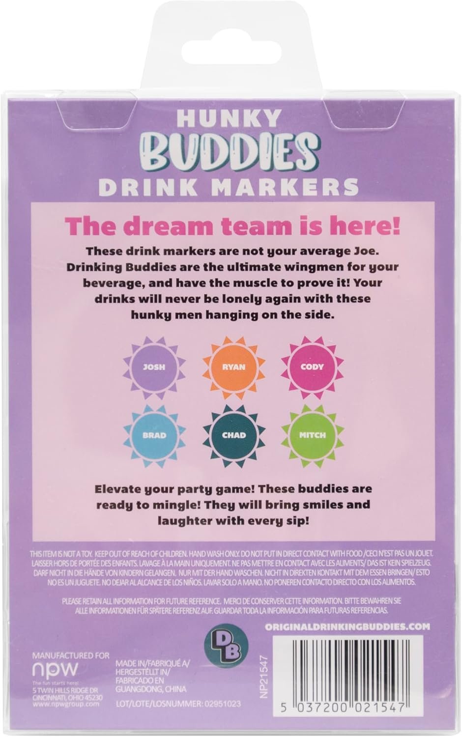 A pool boy is hard to come by in the winter, but she’ll be singing Mele Kalikimaka when Chad and his drinking buddies are hanging their Speedo-clad butts off of her and her friends’ drinks. There are 6 in the pack, enough to designate whose drink is whose on Girl’s Night In.
