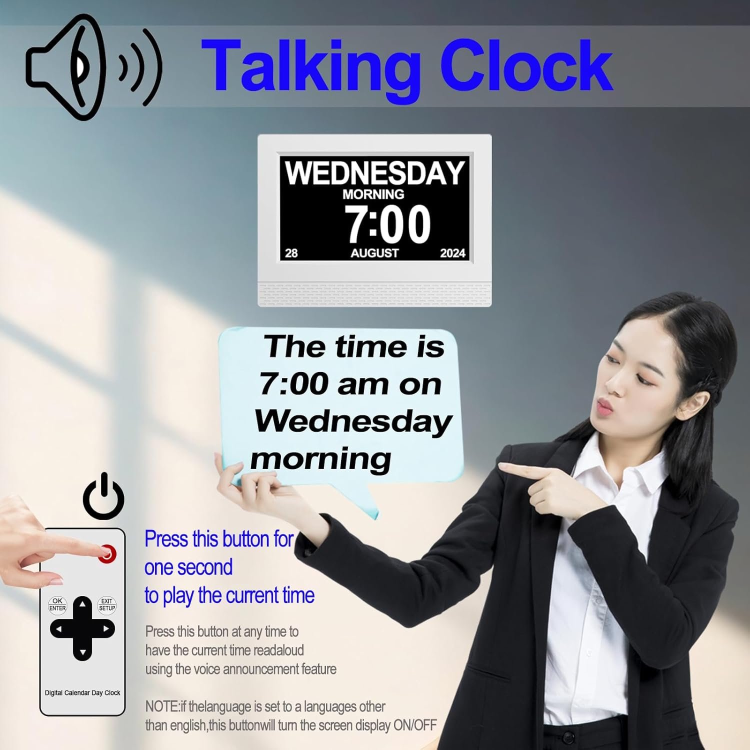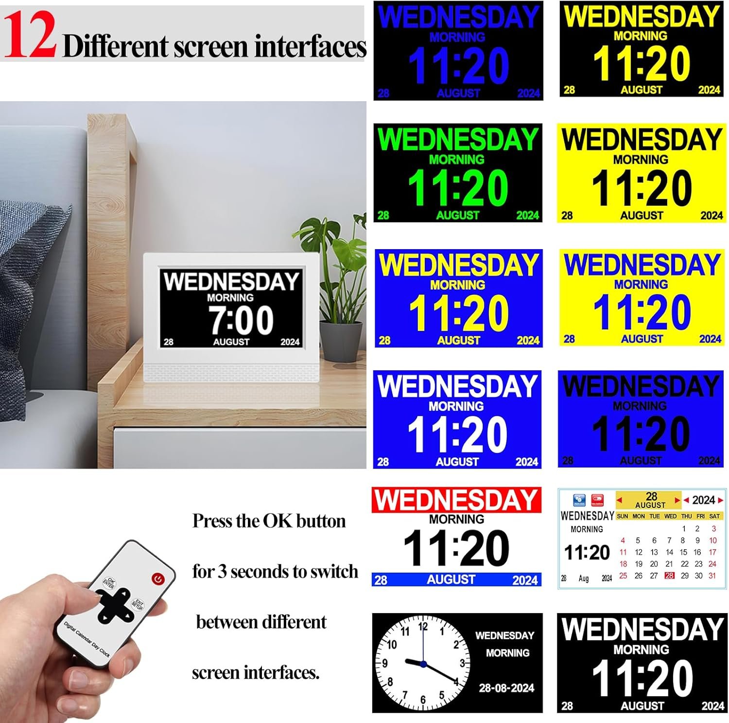 Display the full day, calendar date, and time of day in a large bold and easily read lettering with this clock. Place it anywhere and you’ll always know the day and the hour.