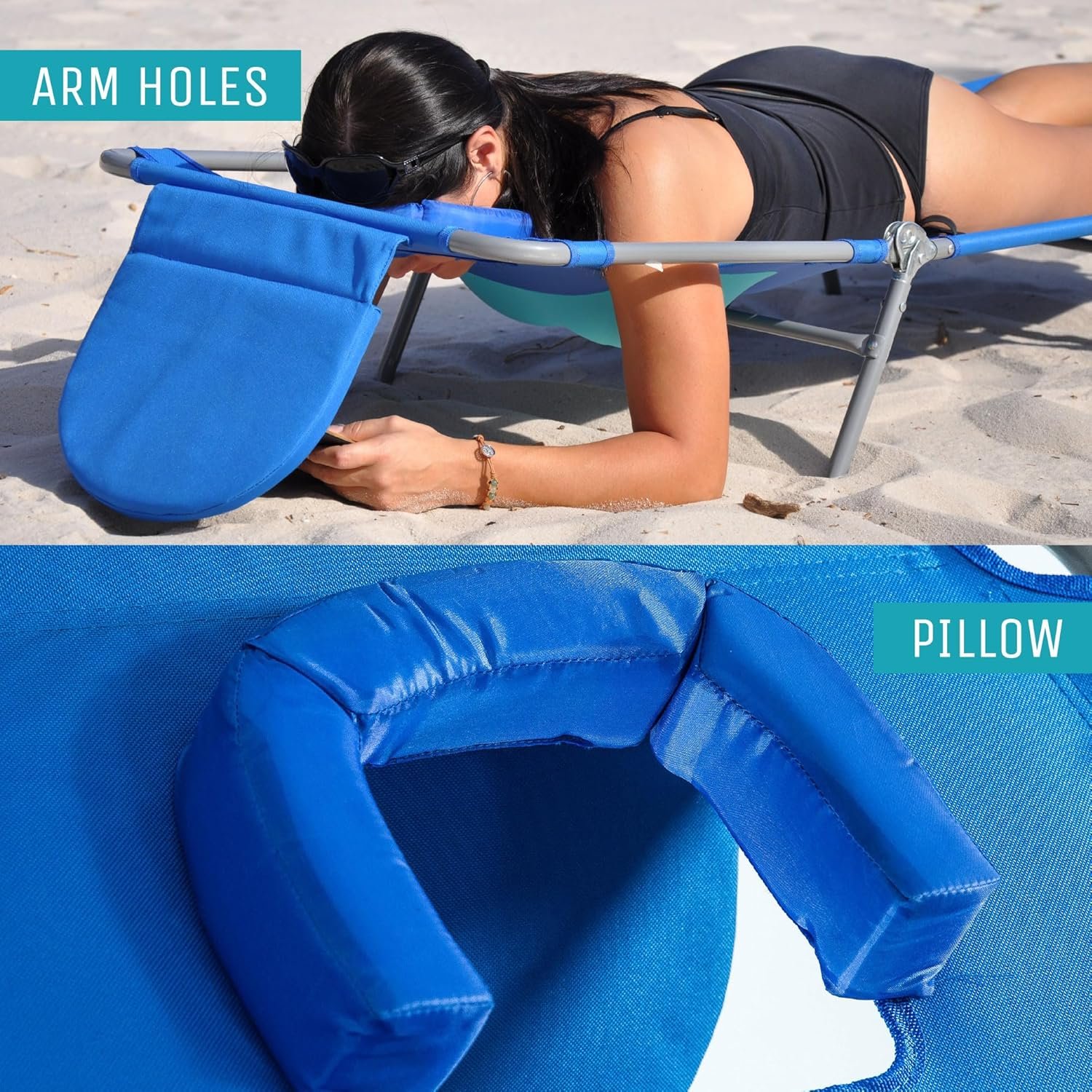 Achieve an even tan along your backside while you enjoy a good read with the face down tanning chair. The special opening on the chair allows you to comfortably lay face down without having to deal with sand getting on all over your face.