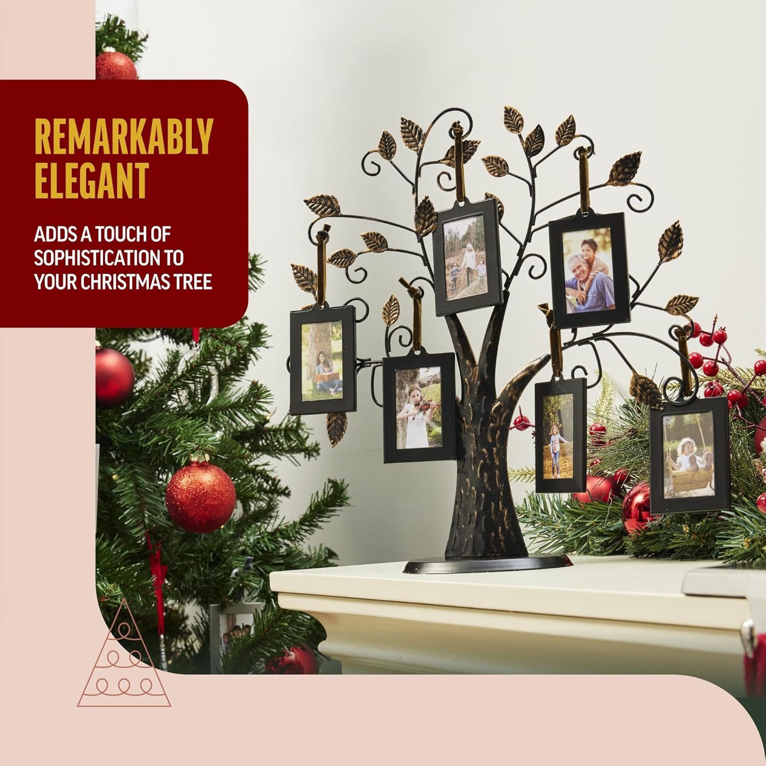 Showcase your blossoming family with this bronze metal family tree photo stand. Standing on its own, this intricately designed tree features six hanging 2″x3″ frames that you can fill with photos of your loved ones.