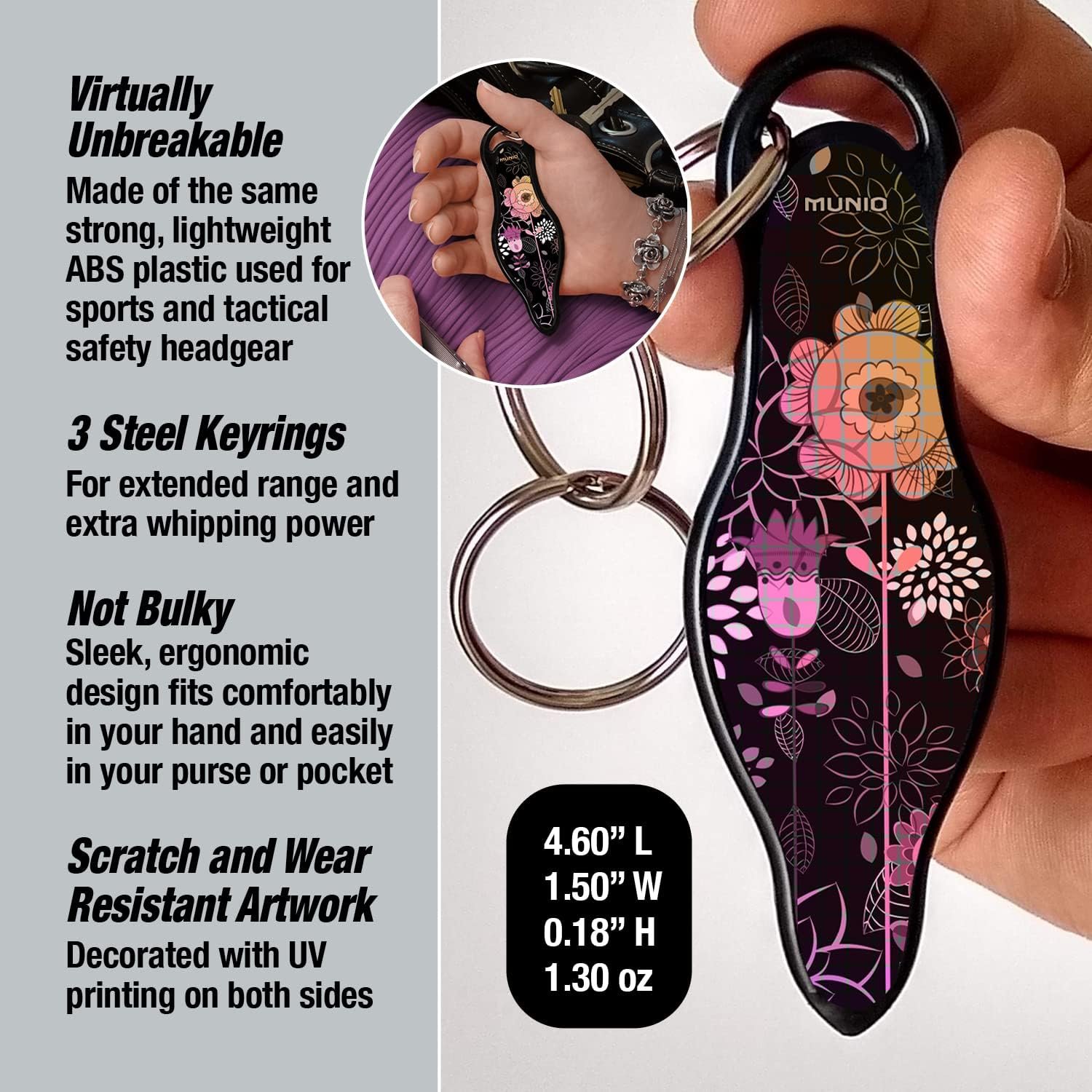 Keep an ace up your sleeve, or rather, in your purse if danger arises by toting around this floral self-defense kubaton keychain. Designed by a self-defense expert, this virtually unbreakable keychain allows you to strike your attacker with the point or use your keys as a whip.
