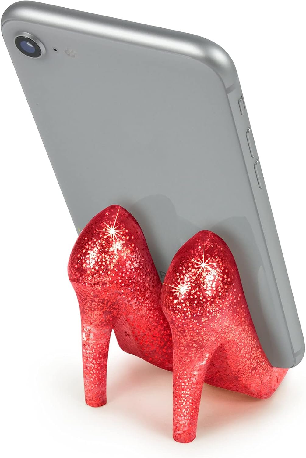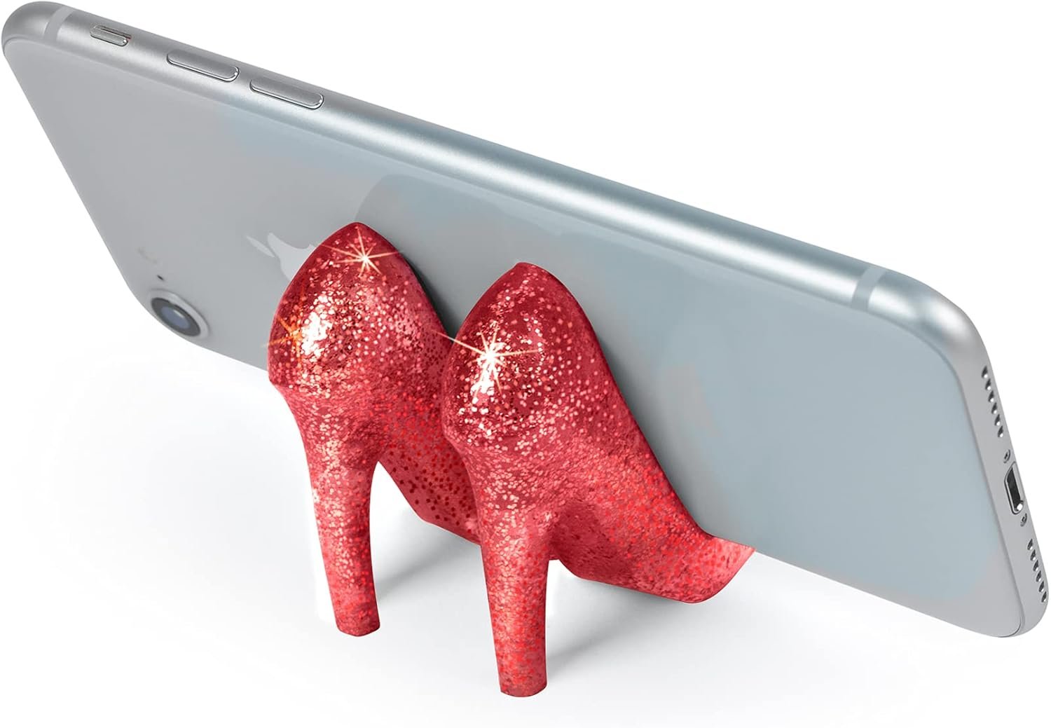 Morning coffee gets a lot more exciting when she can watch a recap of her favorite reality show on her phone. With these sparkly red pumps hold her phone in the perfect position for viewing.