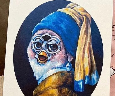 You’d think that the Furby couldn’t get any more disturbing than it already was but then it went and became the girl with the pearl earring and YIKES. It’s the terrifying mish-mash of fine art and furry fads and it belongs on your wall. The handmade print is about 8″x10″ so there’s no way to miss it.