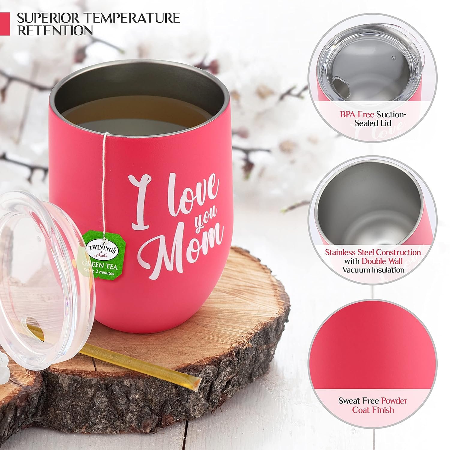 Warm up mom’s morning with a tea and tumbler set that will suit her to a T. This set comes in a cute gift bag and contains a selection of Tazo Tea bags and honey sticks for her to steep and enjoy in the included “I Love You Mom” insulated Tumbler.