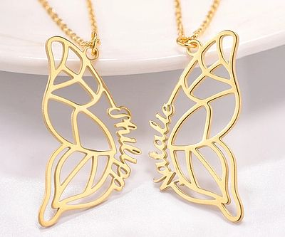 A couple of gals that are sisters and best friends could use a matching necklace pair as special as they are. This is a sophisticated spin on the traditional BFF necklace. Each side of a butterfly’s wing is crafted with each sister’s name as one-half of the body. There are several font styles and three finish colors to choose from.