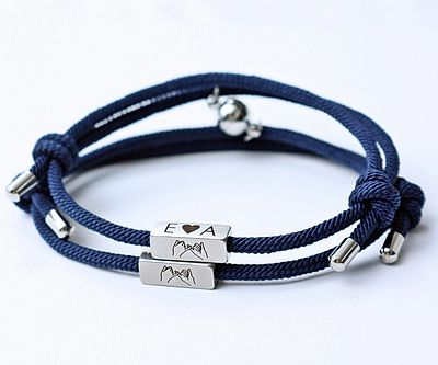These matching bracelets are delightfully understated, and you can both feel great about wearing them. The charm is engraved with your initials and a tiny pinky promise and there’s a small magnetic piece on the other side of the bracelet that adheres to its match.