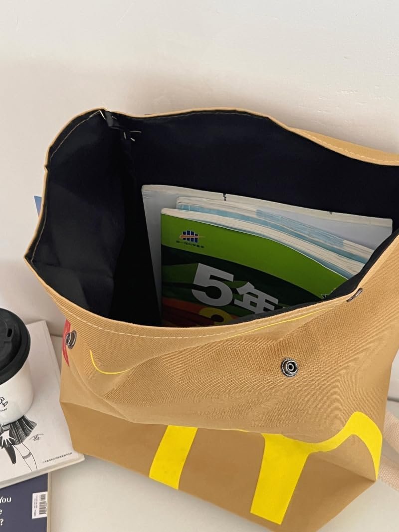 The golden arches guarantee a gal golden style and all her friends will be talking about this sling bag. It looks like paper but it’s actually a soft and sturdy fabric that’ll carry everything you need it to carry and keep its shape.