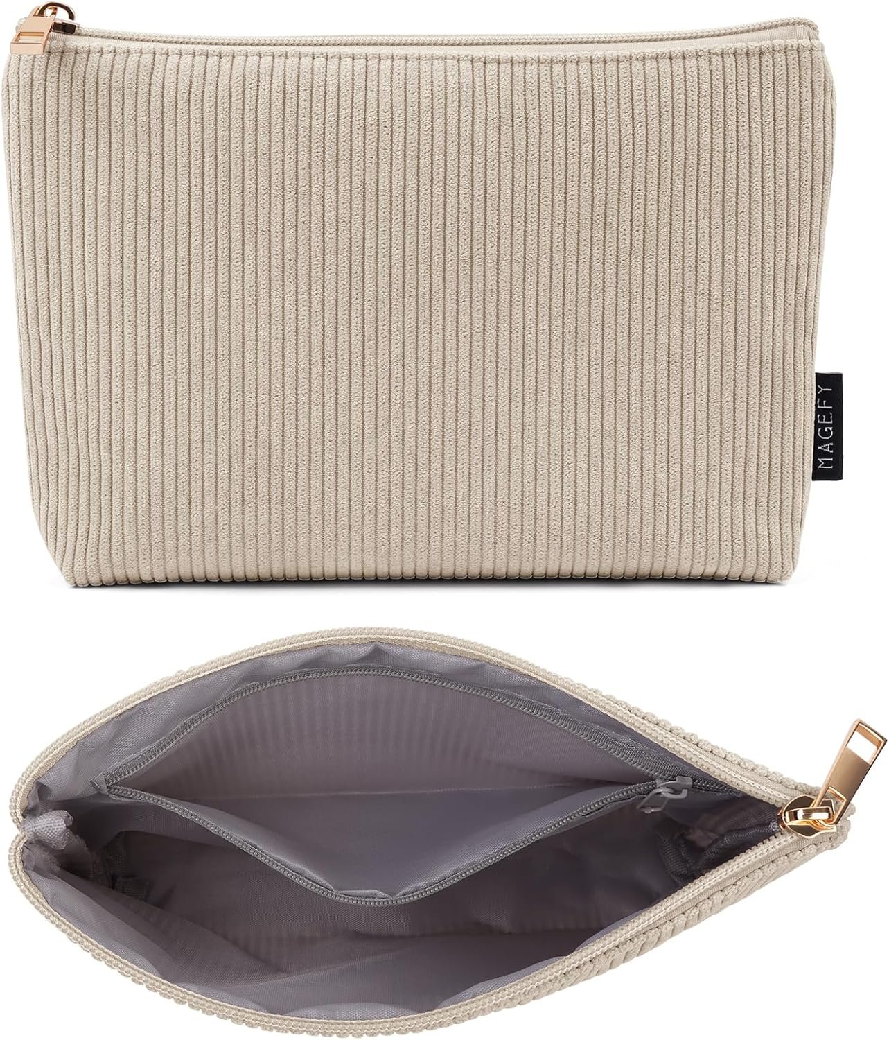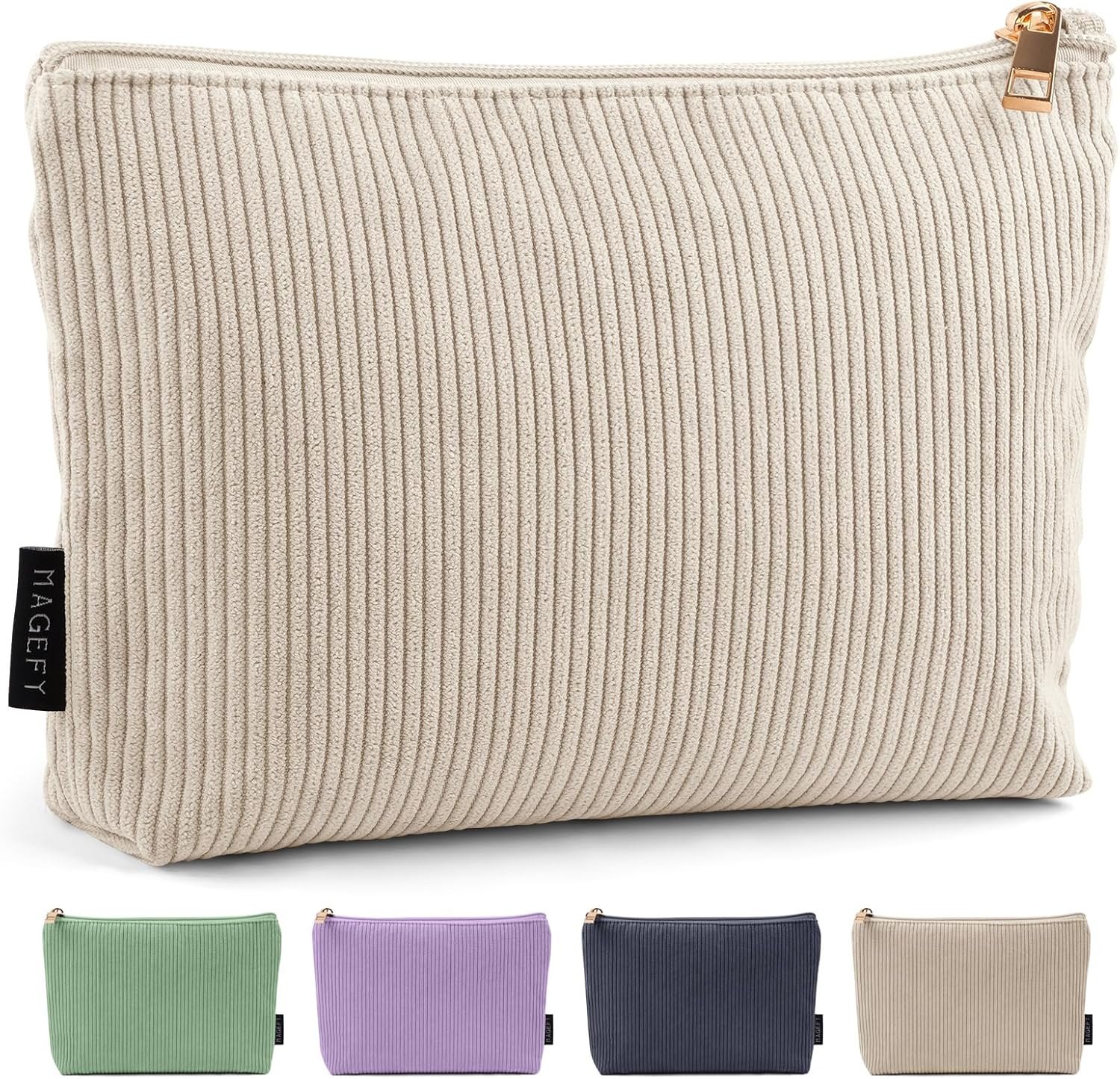 Teens who can’t make up their minds about what vibe they want to give off with their makeup bag can find balance in this pretty minimalist pouch. The soft beige and gray bag has a cute removable blue tassel as an accent. The pouch is spacious and made of upholstery fabric so it’s easy to clean and durable.