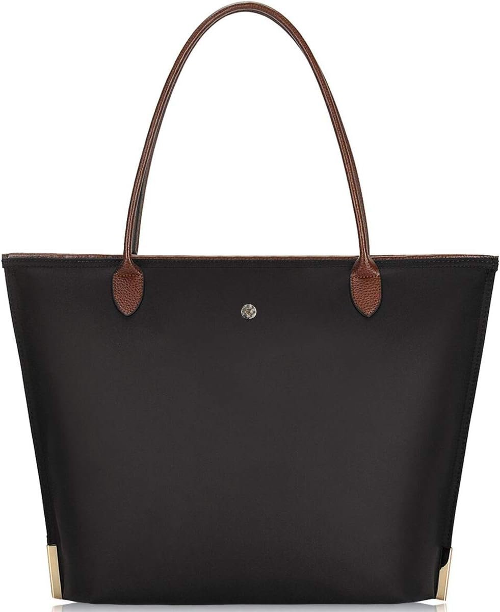 This chic bag has a timeless look that will complete any outfit. At work, school, or out and about with the girls, the nylon and faux leather bag is large enough to hold her laptop, tablet, or her spoils from the farmer’s market. It has divided pockets on the inside for easy sorting of her things.