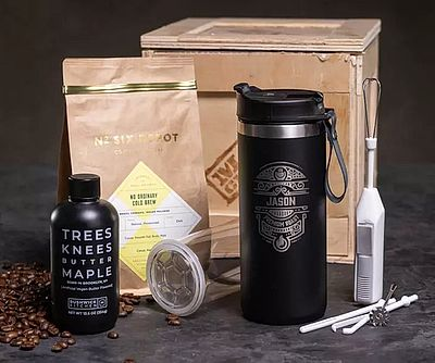 You will his captain nation efforts with a crate packed with gourmet coffee equipment. Inside this box, he’ll find a Java press that guarantees a smooth taste every time with an accompanying tumbler, a cold brew mix, maple butter syrup for sweetness, and a mini mixer to blend it all together.