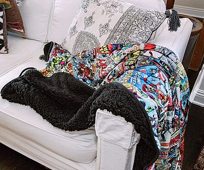 SNUGGLE UP WITH YOUR FANDOM Calling all Marvel fans! Show off your love of superheroes with this super comfy Marvel Comics Throw Blanket. Authentically designed, this fandom-themed blanket features a vibrant collage of 72 different classic Marvel comic book covers. Popular superheroes are featured in the design, including Captain America, Iron Man, Spider-Man, and many other fan-favorite characters. Made up of 100% silk touch polyester material, this thick and fluffy throw blanket is ideal for relaxing and enjoying a cozy leisure session. Super soft to the touch, the sherpa backing provides an extra cozy layer of warmth that makes it great for snuggling up on the couch or bed while reading all of your favorite comic books. Measuring a roomy 54 x 72 inches, the oversized design means you can easily wrap yourself up in this fleece blanket or even place it around your shoulders like a caped hero of snuggles. Easy to accessorize with your living space, you can stylishly drape this sherpa blanket anywhere that could use an extra cozy touch or decorative accent. Perfect for everyday use, this Marvel Comics Throw Blanket is machine-washable and easy to clean. Machine wash with cold water is highly recommended. SUPER STYLING This cozy throw blanket features 72 different classic Marvel comic book covers including: Amazing Fantasy #15 (first appearance of Spider-Man) Tales of Suspense #39 (first appearance of Iron Man) The Incredible Hulk #1 The Avengers The Black Panther Doctor Strange And many, many more!