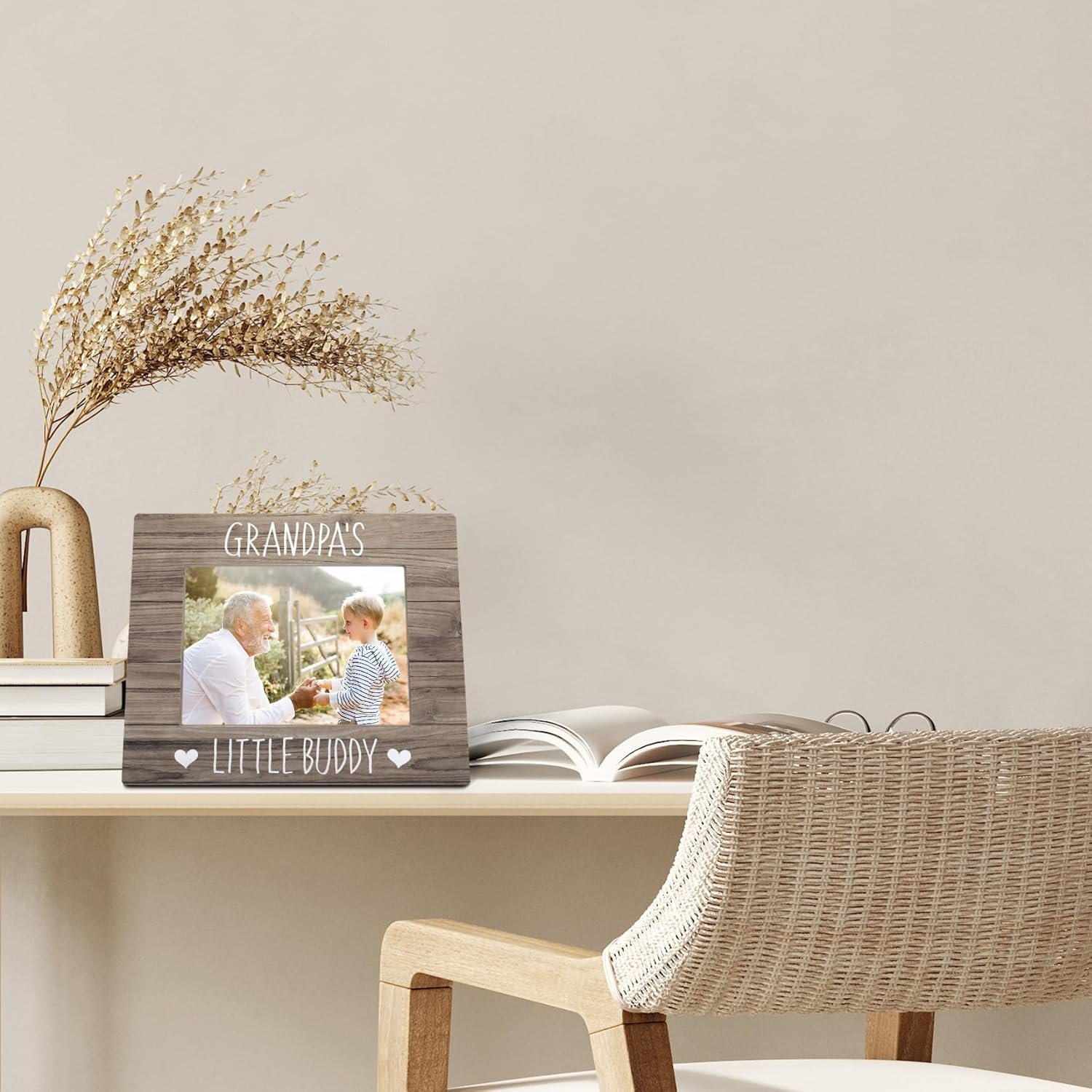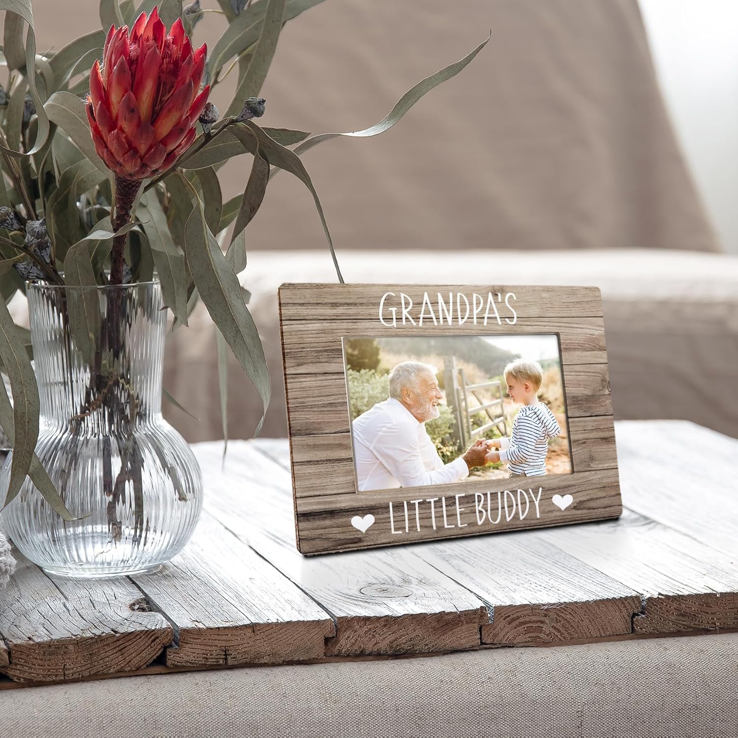 Grandpa’s little buddy can look back at him every day when he’s got the starring spot in this adorable frame. The wood frame is available in 41 different colors and is the perfect spot for a 4″x6″ picture.