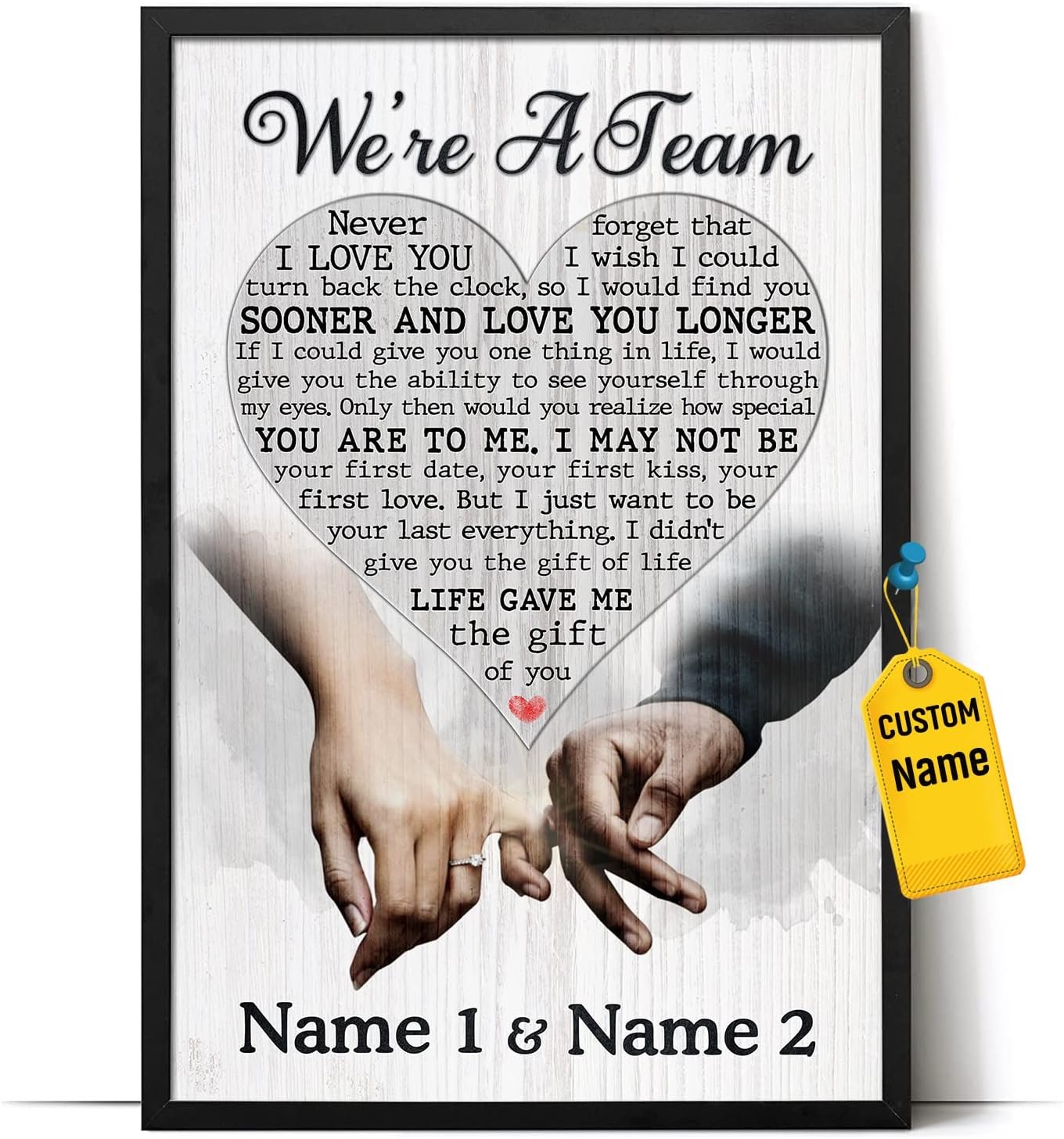 Count the ways you love him with a cute contemporary poster that he’ll be happy to hang on the wall of his office or put in a frame on his desk. Add up to nine special moments or places that he’ll smile whenever he thinks about, and add a short message at the end of the 8″x10″ print.