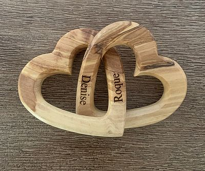 Your love will appreciate the symbolism of these interlocking wood hearts even more after you tell her that they’re engraved from the same piece of wood. The olive wood hearts are carefully carved from a single block, never separating in the process. Then, they’re engraved with your names to finish their heartwarming look.
