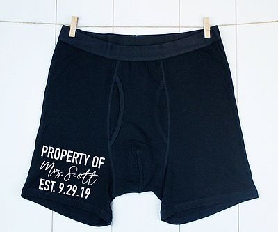 He liked it, he put a ring on it, and now his ass belongs to you. These personalized “Property Of” boxers are a hilarious reminder to him that his twig and berries are yours to do with as you please.