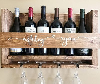 The best part of getting married is that everyone gives you a bottle of wine. You can be the guests that give the wine a place to call home. This adorable rack holds 6 full bottles of wine and has a cool rustic vibe that fits any decor. there’s a spot at the bottom to hang 4 wine glasses.