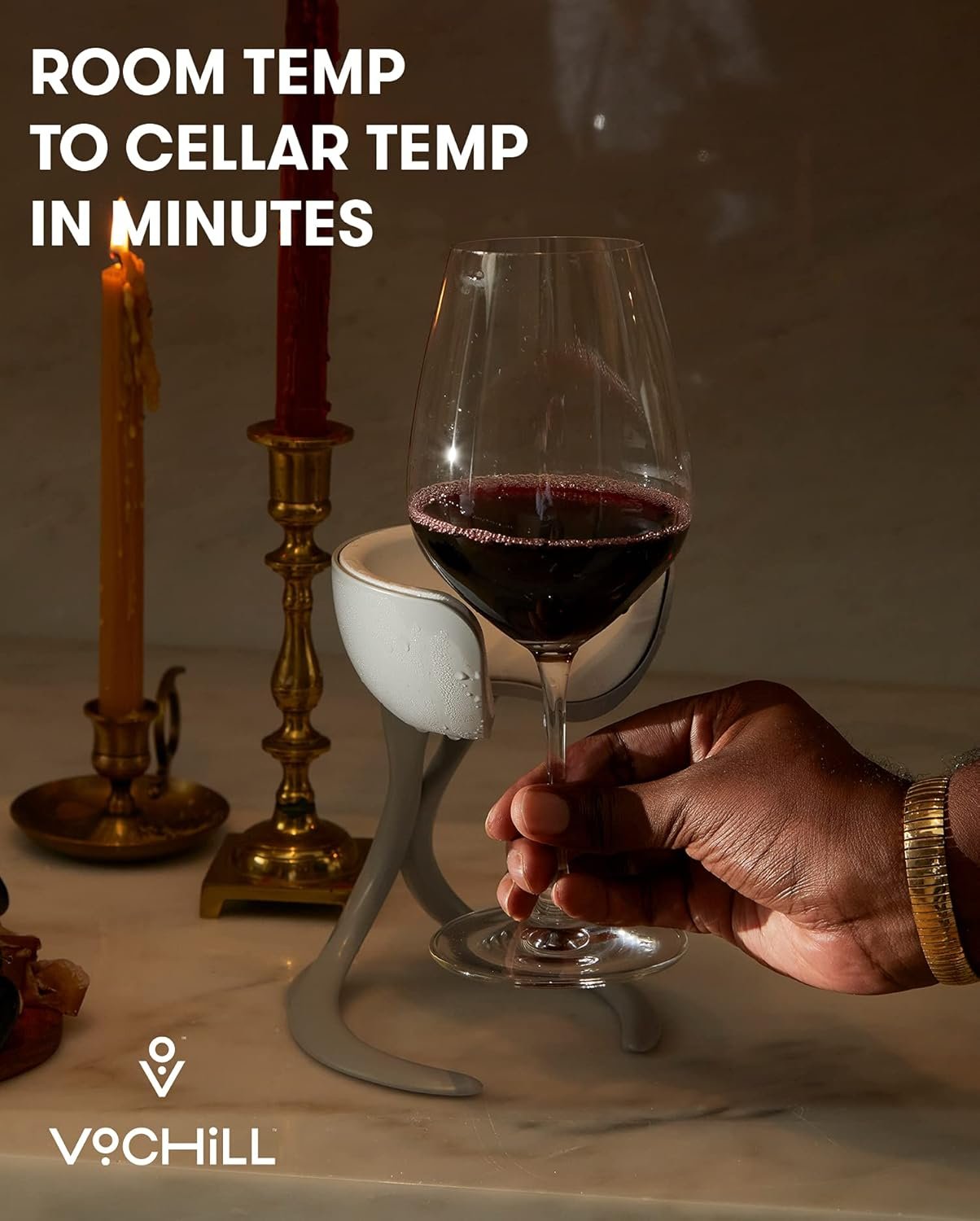 This chiller will really give her a hand at keeping her beverage cool. The futuristic-looking piece cradles any standard-sized glass and keeps it cool for over an hour inside and up to 45 minutes in the outdoor heat.