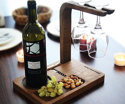 Girl’s night, but make it classy! That’s what she’ll get with this personalized wine stand. Not only does it hold two glasses safely, but the wood stand has a corkscrew built-in and a divot carved to hold tasty snacks.