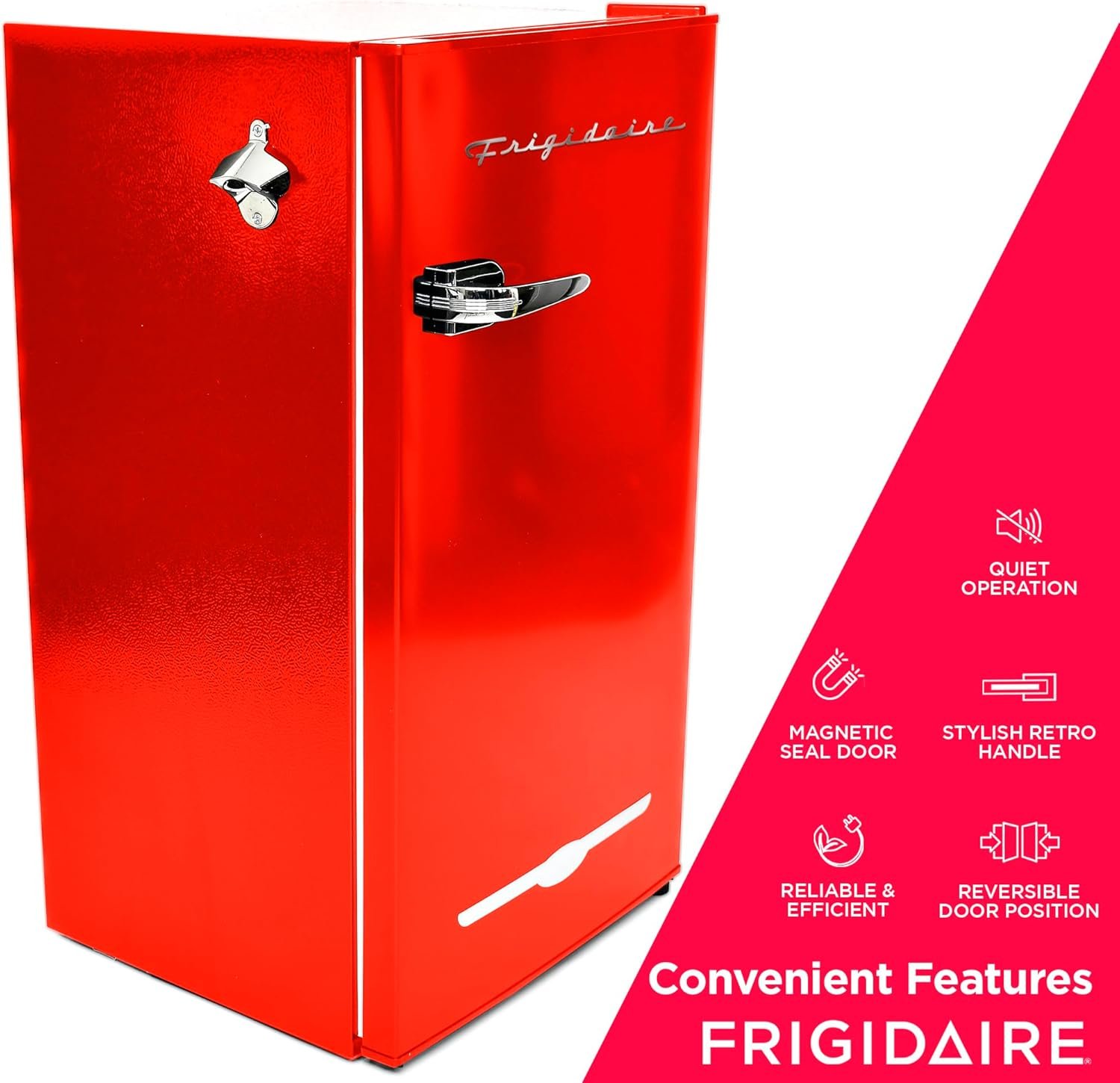 Welcome to the world of quality built, affordable kitchen products. Introducing the beautiful retro 3.2 CU. FT compact refrigerator! This refrigerator is at the next level! The fridge is happy hour ready with an attached bottle opener, chrome pull handle and removable glass shelves which makes it perfect for an easy clean up. The interior freezer compartment will keep any leftovers nice and fresh, a gallon door bin with adjustable temperature control so you can keep your white wine nice and chilly, and if you’re not a wine person, have no fear, there’s a dispense-a-can for all your soda and beer needs. All this for an affordable price.