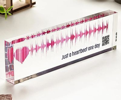 Touch your girl’s heart with a work of art that’ll be music to her ears. This unique plaque is engraved with a sound wave in your choice of color and has a tiny QR code that will direct her to a link of the song or recording of your choosing. It could be a melody she loves or your voice.