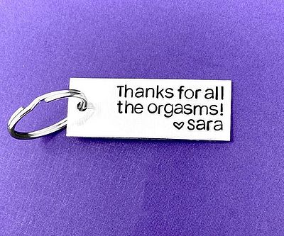 This personalized Thanks for All the Orgasms keyring is a little NSFW, so he might want to hide it among a collection of many keys. However, if he’s going out with his buddies, it should be on full display. Being able to satisfy his woman is something that he’ll be proud to brag about.