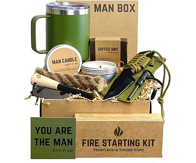 A guy who’s dying for a little adventure can get a jump start on a camping trip with this Man box. Inside the crate, he’ll find survival gear like a knife and fire starter, and an insulated mug. He’ll also find a candle and bar of soap with adventurous scents.
