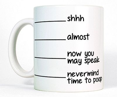 Don’t talk to him before he’s had his morning cuppa joe, but don’t go into the bathroom after he’s had his morning cuppa joe. This hilarious time to poop mug tells it like it is. The java tastes great, but there’s no denying as soon as he sees the bottom of the porcelain mug, he’s gotta hit the porcelain throne.
