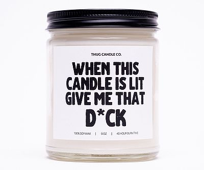 This candle is the bat signal of booty calls. You married him because you wanted this D for the rest of your life, so when you’re feeling randy, he’ll love that you gave him this “When This Candle is Lit, Give Me That D*ck” Candle. Choose from 7 sensual scents for the hand-poured soy wax candle.