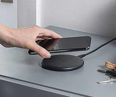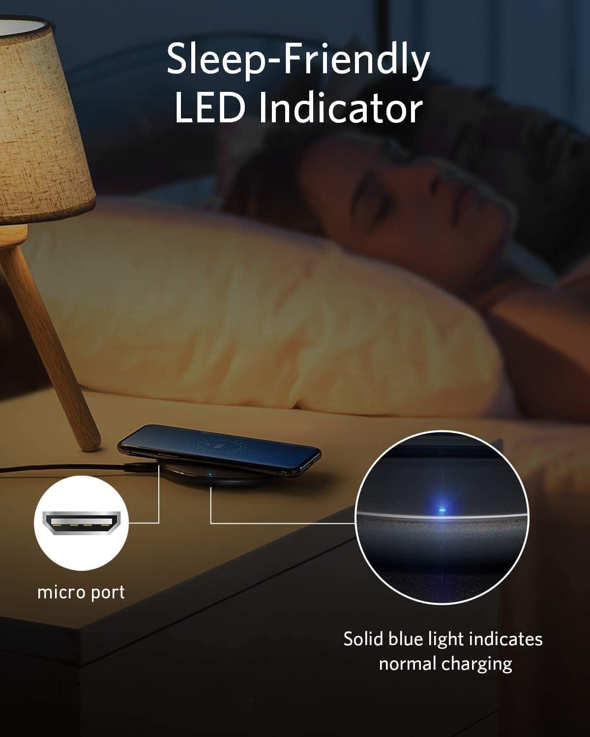 This charging pad is the perfect size to keep on a side table by the couch or your bed. The pad works with any Qi-enabled device and provides put out between 5 and 15 watts.